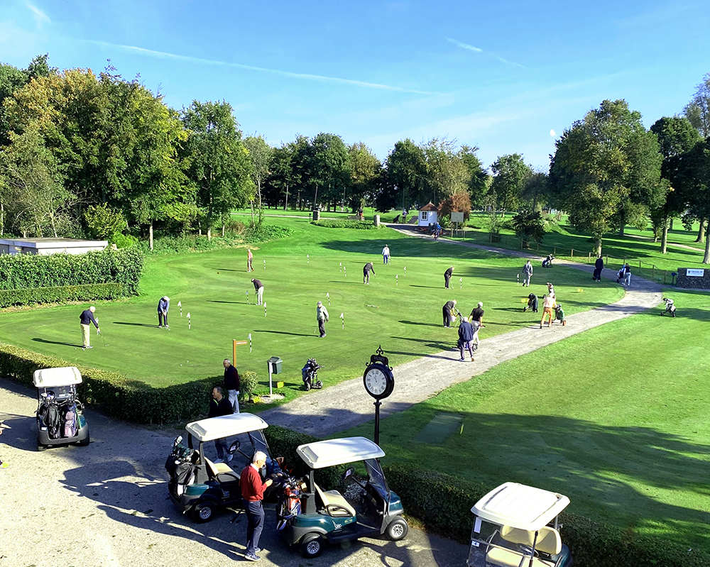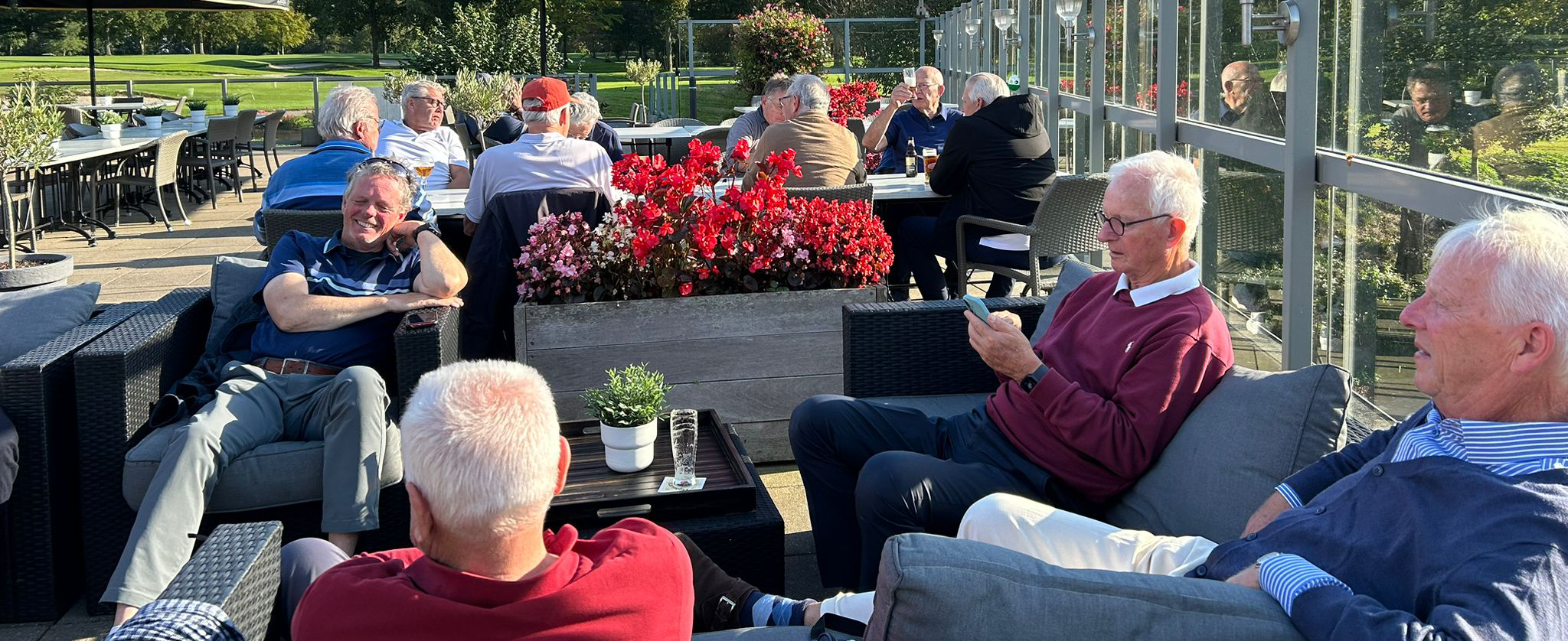 Er was dan ook voldoende tijd om, heerlijk in het zonnetje, op hole 19 na te praten onder het genot van een hapje en een drankje.
