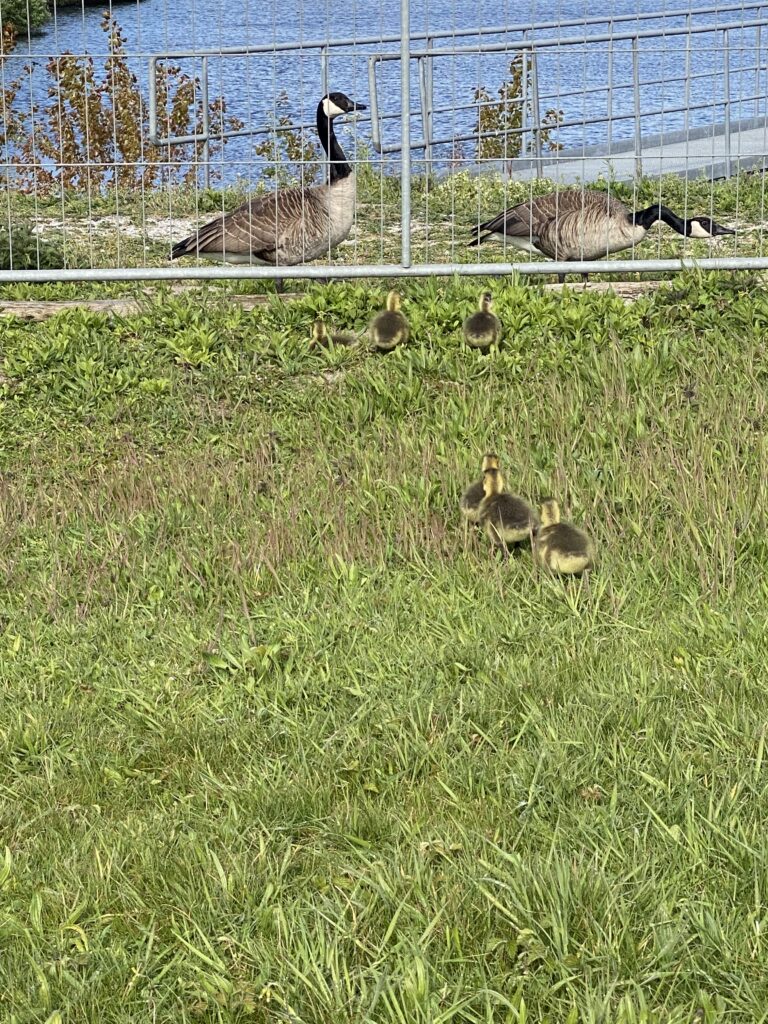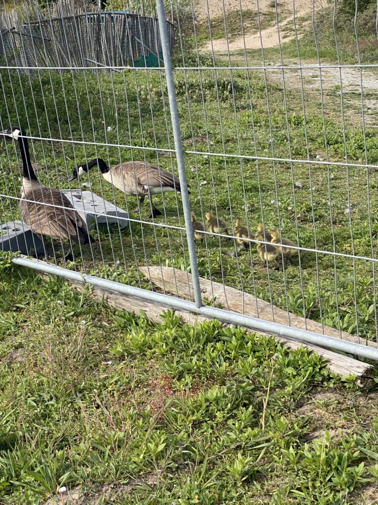 Deze domme gansjes, waren onder het hek vandaan gekropen, maar gelukkig vonden ze een gaatje om bij hun ouders terug te komen.
