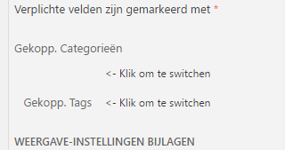 aan de rechterkant van je (Media invoegen)scherm zie je de tekst staan ‘’Gekopp. Categorieën’: